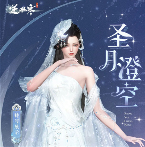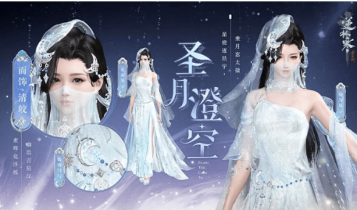 1、圣月主题的时装,女性角色的圣月澄空时装主要以银白色调为主,搭配着纯白头纱给人一种圣洁的感觉。