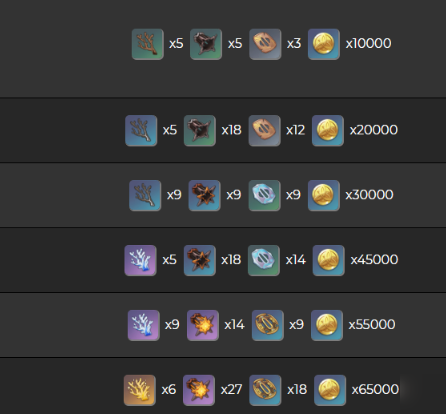 远海夷地的瑚枝5个、混沌机关5个、破旧的刀镡3个、1w摩拉。