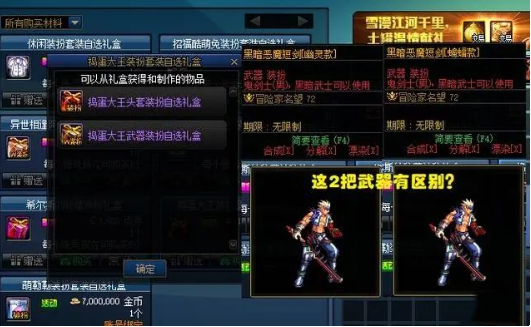 【5,捣蛋大王装扮礼盒】售价1500万金币,不限制购买次数,弓箭手无法打开。