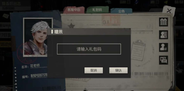 3、领取方法:进入游戏后完成新手指引,然后点击左上角图标打开个人信息界面,选择【礼包码-输入兑换码】,验证完成后即可获得奖励,需要通过邮件收取。