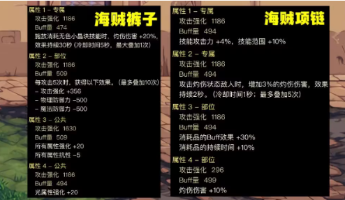 4、【海贼项链】:灼烧15%、灼烧10%、技攻4%范围10%、消耗品Buff30%,神界新增自定义,也不能提前获取。