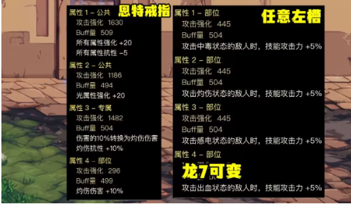 8、【恩特右槽】:“灼烧15%+3个异常5技攻”或者“灼烧15%+龙7可变+2个异常5技攻”。