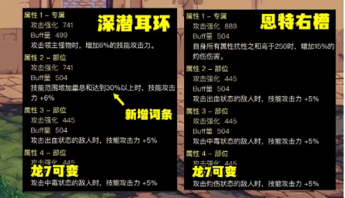 7、深潜耳环】:现版本洗出“领主6技攻+2个异常5技攻”的3词条胚子,神界版本传送“30范围6技攻”词条,可达成完美,也可以是“龙7可变7655深潜耳环”,神界传送“范围6技攻”。
