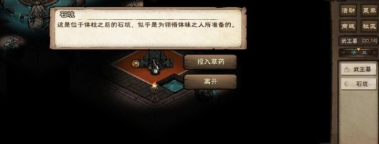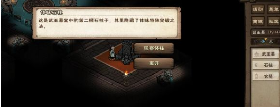 5.在【帝陵外】的传送阵(8,6)选择「前往武王墓」。在【武王墓】的(19,14)点击「石柱」选择「观察体柱」。
