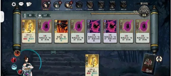 卡牌放的顺序第一张放狂剑二式(为了下一轮攻击的时候,更快造成伤害),中间放狂剑一式(当然有狂剑二式代替狂剑一式更好),狂剑二式放越后面越好能造成的伤害更多(狂剑二式优先把一式换下场,而不是追求先升级二式)