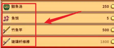 3、最后钓鱼等级提升后威利的鱼店将开放新的钓竿,这时候就可以上鱼饵了。好的钓竿可以帮我们钓到高品质的鱼,甚至是四季鱼王。