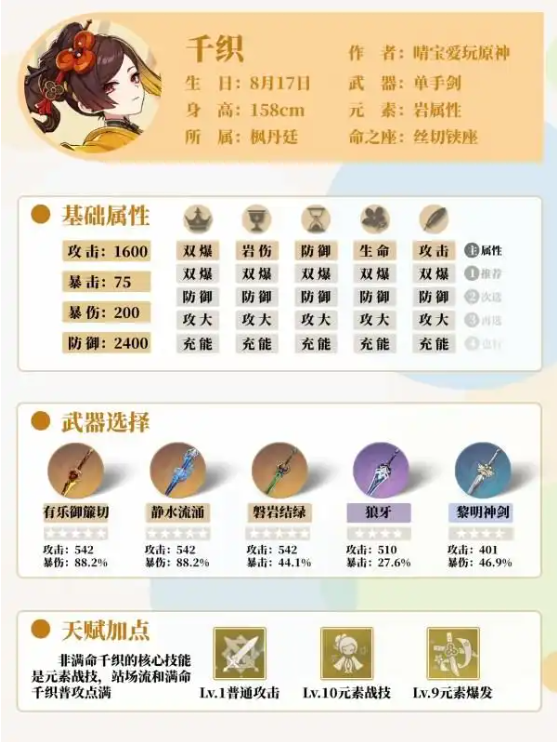 以上就是原神千织武器圣遗物选择最全攻略分享的全部内容了,希望对大家带来帮助。