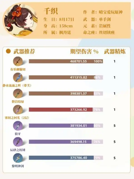 点评:这把武器绝版了,但是跟千织轴对不起来,千织吃到的增伤有限