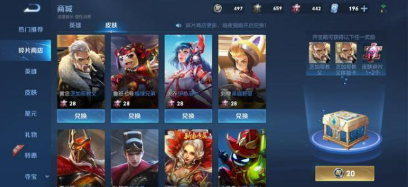 王者荣耀皮肤碎片商店多久更新一次?在游戏中,玩家可以通过多种方式获得皮肤,其中碎片商店的皮肤兑换是很多玩家的选择,可以通过任务或者活动获得大量皮肤碎片,可以用碎片交换一些皮肤,很多玩家还不清楚王者荣耀皮肤碎片商店多久更新一次,下面小编就给大家介绍一下王者荣耀皮肤碎片商店更新时间,一起来了解一下吧。