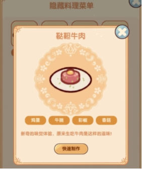 隐藏菜谱三:鞑靼牛肉=彩椒+香菇+鸡蛋+牛腩。
