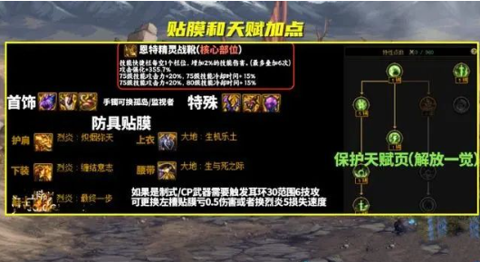 在贴膜防具上,首饰“怪异”3件,特殊部位左槽“斗志”,其他的可选择“监视者”,也可选择“怪异”,防具都选择“大地”。