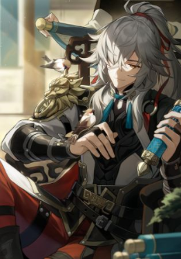 一只雀儿跳下他的肩膀,他顺势抬手接住。