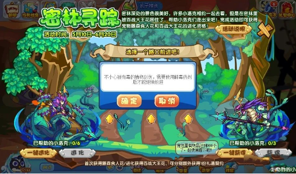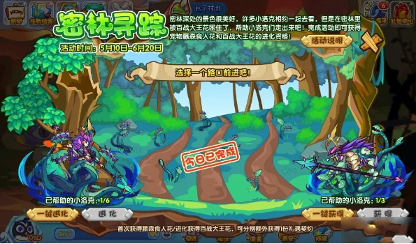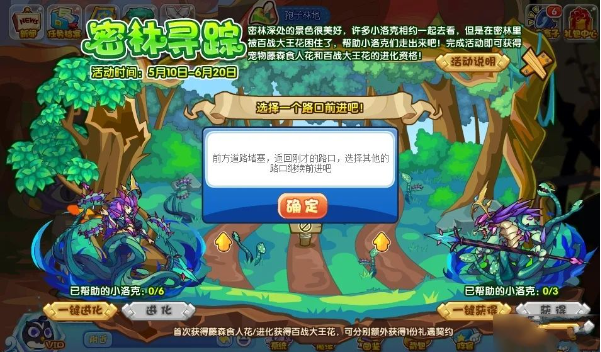 累计帮助3位小洛克走出密林即可获得宠物“藤森食人花”!累计帮助6位小洛克走出密林即可解锁宠物“百战大王花”的超进化资格!