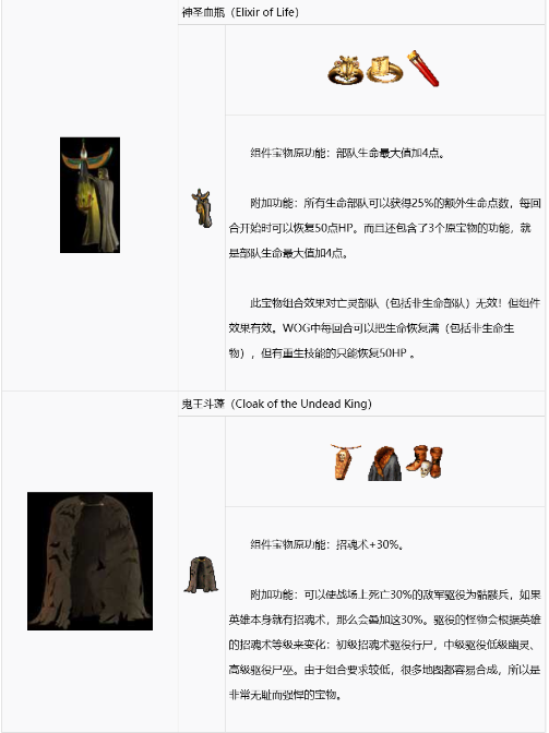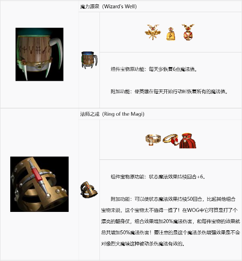 组合宝物的最后一项是WOG中才有的。以下几条是WOG中有类似加强效果的。