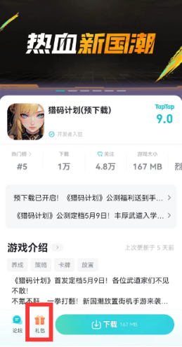 1、首先我们需要进入taptap应用软件,然后搜索【猎码计划】,进入游戏详情页。