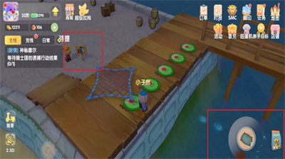 2、到达神秘湖水域后,点击地面上的鱼饵,即可开始钓鱼。如想钓快一点也可以使用中高级渔网捕捞。
