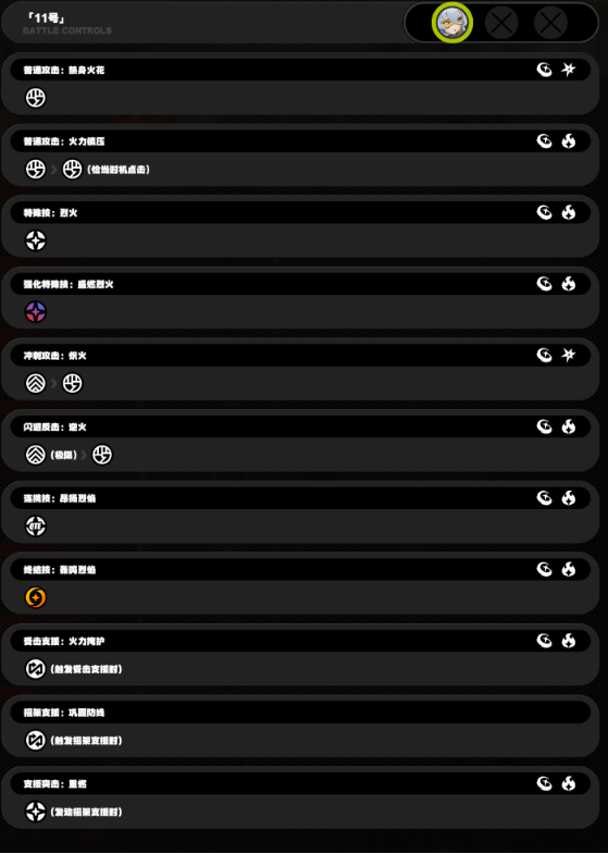 触发连携技时,选择对应角色发动,对前方小范围敌人进行强力上挑斩击,造成大量火属性伤害,招式发动后,[普通攻击]和[冲刺攻击]必定触发[火力镇压],最多持续15秒或触发8次,招式发动期间拥有无敌效果。