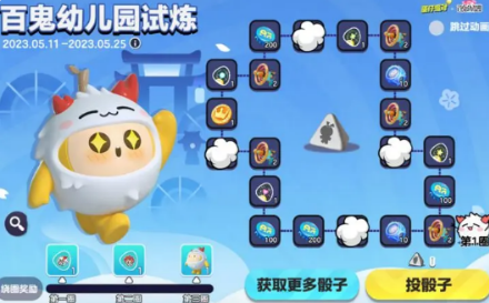 1、蛋仔们可以参与百鬼幼儿园试炼,完成任务获取骰子,并走出对应步数,即可获得对应位置的奖励;