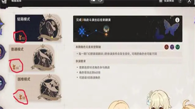 4.7新深渊名为「幻想真境剧诗」,玩家来到对应场景,与「幻剧之书」交互,即可开启「幻想真境剧诗」挑战。该挑战分三个等级:轻简、普通和困难,奖励上限为220、440和620原石。玩家想要领完对应难度的奖励,分别需要打3关、6关和8关,3/6/8关有特殊代币玩具勋章,可用于兑换角色动作。