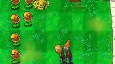 3、在最左侧种植两个寒冰仙人掌,在左侧第四列种植多个阳光南瓜头。