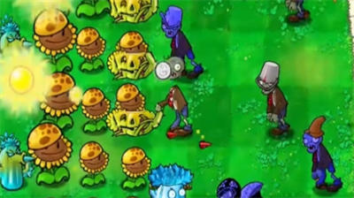 4、然后在右侧种植多个高冰果,继续补充多个阳光向日葵。