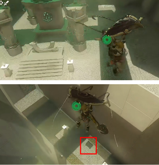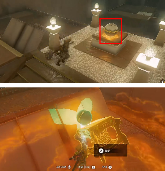 1、进入摩罗恩克神庙后我们来到下图物体位置,等待他下落的时候站上去。