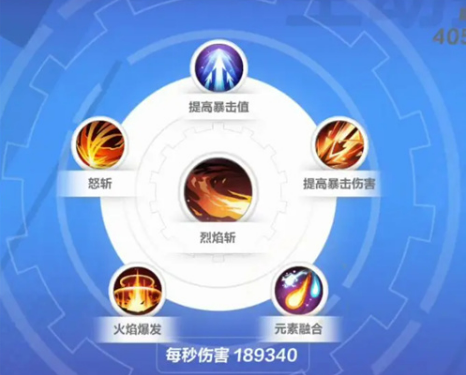 烈焰斩-提高暴击值-怒斩-元素融合-火焰爆发-附加火焰伤害/提高暴击伤害(提高暴击伤害是在拥有战意,面板暴击率在35-50%之间带)