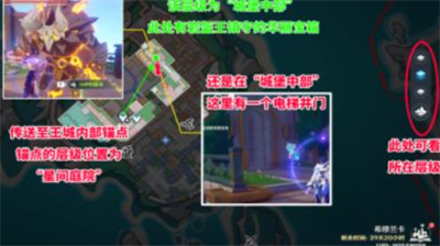 2、从“星间庭院”锚点往“城堡中部”平台走,如图所示