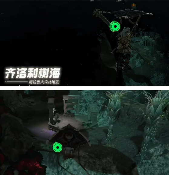 2、来到底部进入齐洛利树海区域,我们朝着下图的方向移动。