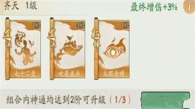 神通箱子中性价比高点就是碎心法和蚀魂咒,直接就可以上最终增伤和最终减伤了,紫色神通里面的护体金光弄到二阶,就可以搞紫色羁绊的最终减伤了。