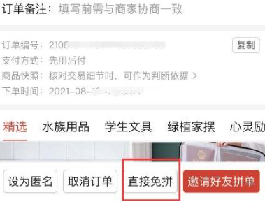 (如果无法免拼那就只能等拼单完成了,拼单过程中是无法取消的)