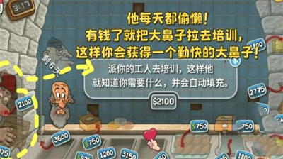 3、我们可以培训大鼻子也可以获得金币,培训大鼻子可以提升他的工作效率。