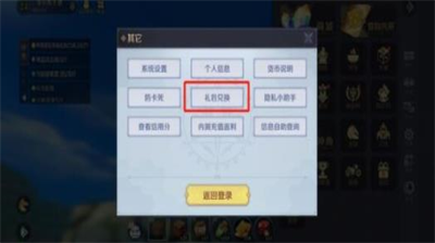 3、点击进去后,玩家会在中间第二行找到[礼包兑换]。
