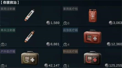 医疗物资:包括回复血量的道具、止血带和止疼药,以应对骨折、出血等负面状态。