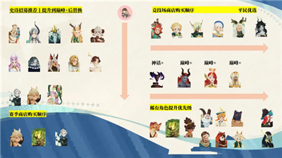 1.以巅峰+为优先基准,目前女神试炼对英雄池的需求很大,所以一些T1英雄也要提升到巅峰+。冠阶1需要六只本体,投入较大。