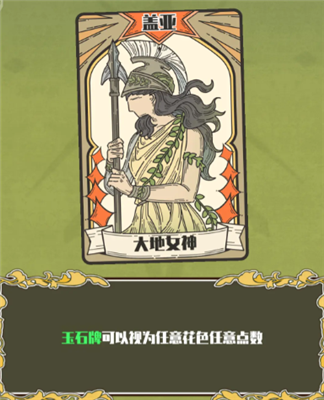 1.盖亚作为玉石流基础build,可视为任意花色点数牌意味着可同时触发所有非特殊牌的天神牌增益效果+同色五条。山脉本体作为前期拿玉石牌基础手段,待玉石牌10~20张左右即可卖出。