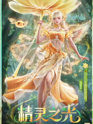 身后半透明的流光翅膀,搭配高开叉华丽长裙,将灵动与优雅结合于一身。披风首次尝试大面积的花朵效果,展现出独属于精灵女王的非凡气质。