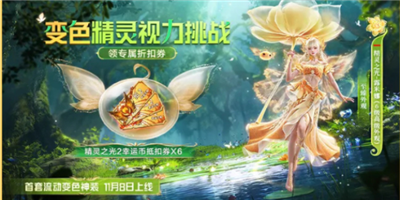 11月6日-11月12日,特种兵们参与变色精灵视力挑战,在充满奇幻色彩的碧灵境域中,每一个关卡都隐藏着神秘的变色精灵。特种兵们需要凭借自己敏锐的观察力,将它们--找出。成功找到所有变色精灵,即可助露米娜掌控光之力量变身精灵女王。