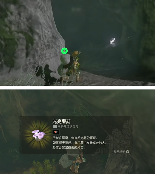 2、找到后,玩家们也是可以看到这个山洞的位置,然后将里面的光亮蘑菇收下。