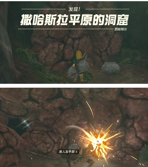 3、随后是这里就是撒哈斯拉平原的洞窟,这里是有一个石头在这里,需要玩家们将这个石门给破开。