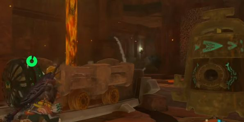 4、我们攻击右侧的机关可以调整轨道车的方向,然后跳上去启动。