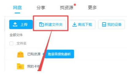 1、首先进入百度网盘,然后创建一个新的文件夹,命名尽量选择识别度高的。
