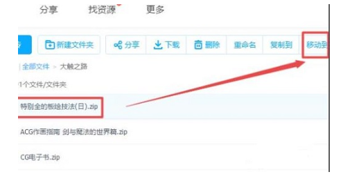 5、选择要分享的文件,点击右上角的“移动到”。