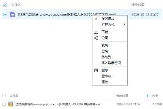 1、首先找到我们无法下载的视频点击“重命名”把文件或视频后缀改成rar。