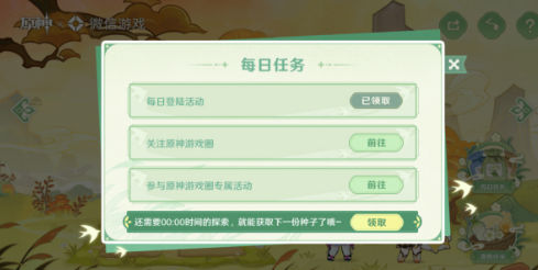 2、种子需通过采集获取,每1分钟可在「每日任务」中手动采集一份,完成「每日任务」中的指定任务则可以获得更多种子。