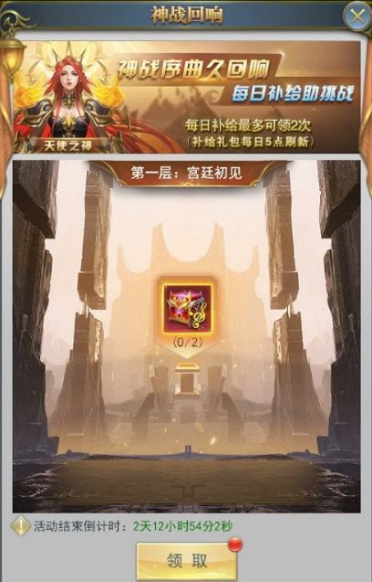每日神战回响最多领取2次,每次补给有时间间隔,领取当前补给7小时之后才可领取下一补给。