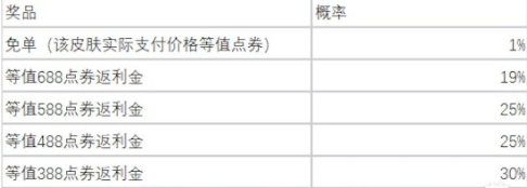 期间商城中售卖的传说皮肤将限时半价,购买后可在4月28日开始的全场半价中返还等值688点券的返利金,或者直接免单。