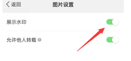 5、最后在其中开启“展示水印”,开启后发布的图片就会自带水印了。