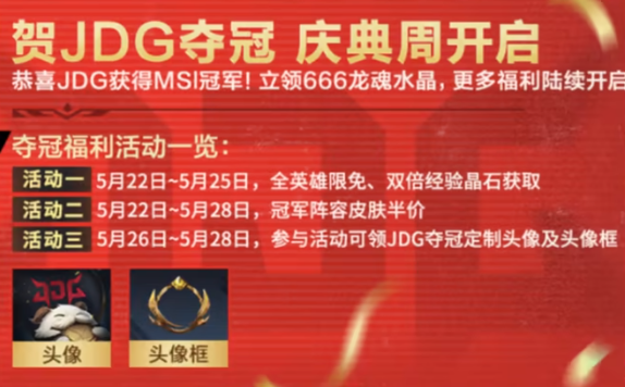 那么以上就是英雄联盟手游JDG夺冠活动玩法分享的全部内容了,希望对大家有所帮助。