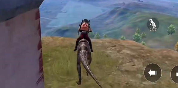 2、靠近悬崖边上,我们直接驾驶着迅猛龙跳跃下去,等待迅猛龙的落地,我们在查看这个结果。